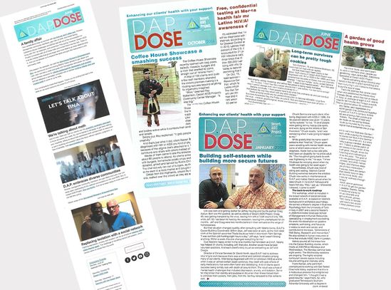 The Problem: Desert AIDS Project, a full service medical facility where I worked as a communications specialist, needed to keep all agency stakeholders abreast of the myriad services offered under its roof. The Solution: I created a monthly newsletter, called Dose, filled with stories about clients, programs, staff, donors and issues affecting the HIV-positive community. Each newsletter was announced by an email to subscribers with teasers that linked to a digital version of the story on our website.
